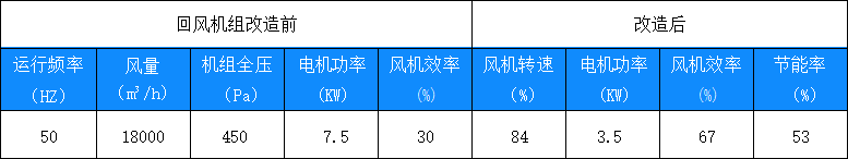 · 功率锐减:电机功率从 7.5kW 降至 3.5kW,在保障 18000m3/h 风量、450Pa 余压的前提下,功率降低 53%;